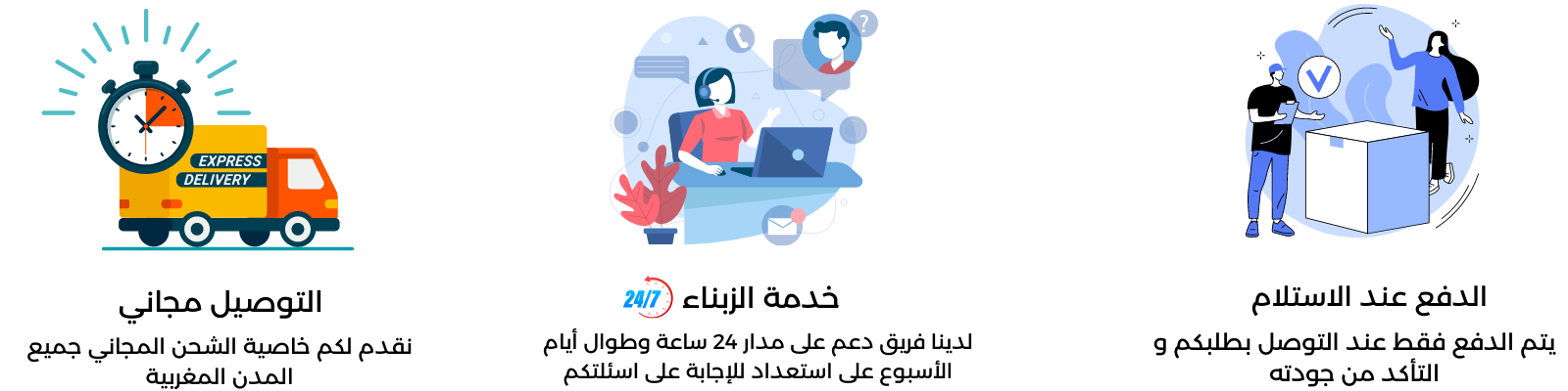 التوصيل بالمجان و الدفع عند الاستلام
